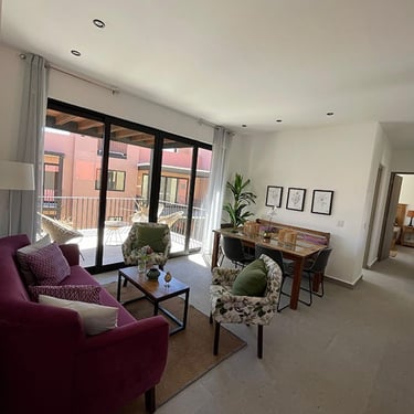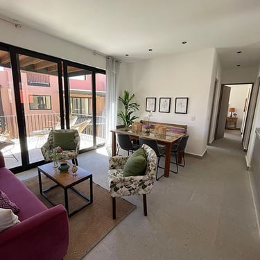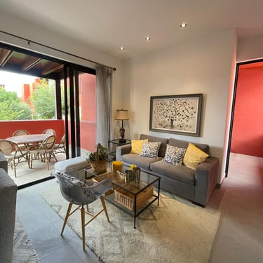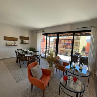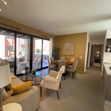Sala Comedor, Cocina Integral, Terraza, Balcón, 1 Recámara principal con vestidor, 1 Recámara secundaria, 2 Baños completos, Lavanderia