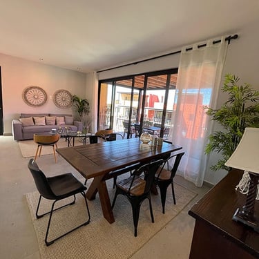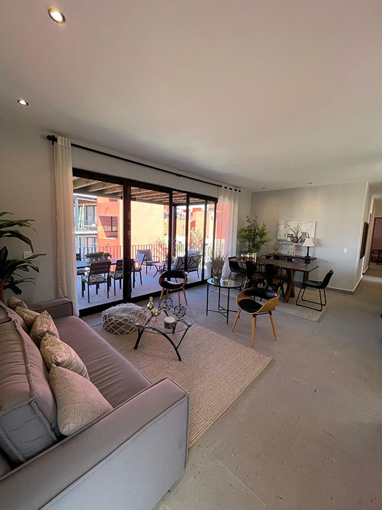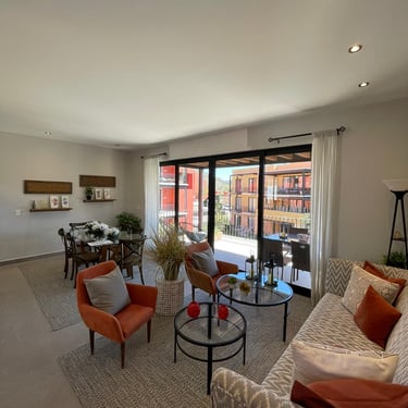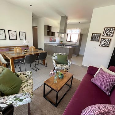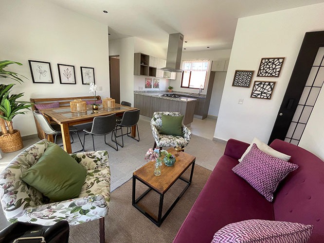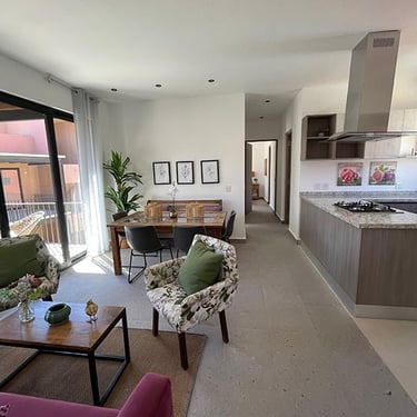 Sala – Comedor, Terraza al descubierto, Cocina Integral, 1 Recámara principal con vestidor, 2 Recámaras secundarias, 2 Baños completos, Lavanderia