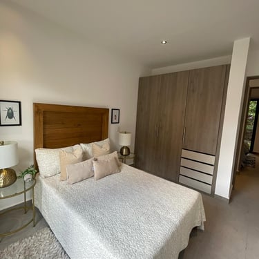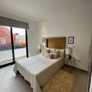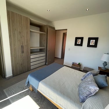 1 Recamara master con vestidor y baño completo, 1 Recamara secundaria con vestidor y baño completo, Terraza y Balcón