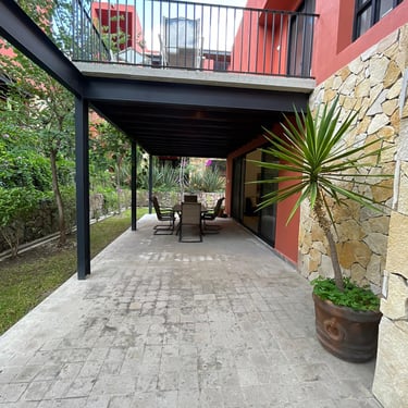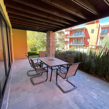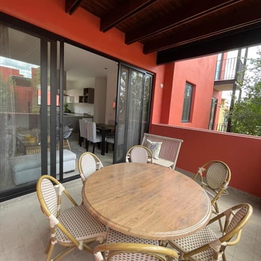 Sala-Comedor. Cocina Integral, Terraza al descubierto con jardin, Lavandería, 2 Recamaras secundarias con baño completo, 1 Recamara de servicio con baño completo, Bodega-alacena